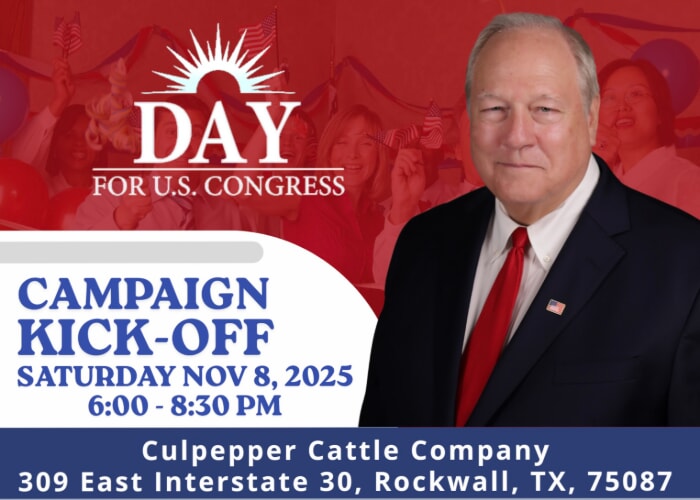 Darrell Day, last year’s Republican nominee for U.S. Congress in District 32, will host a Rockwall County Campaign Kickoff event this Saturday, Nov. 8, at Culpepper Cattle Company in Rockwall. ...